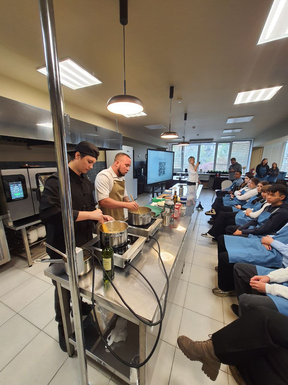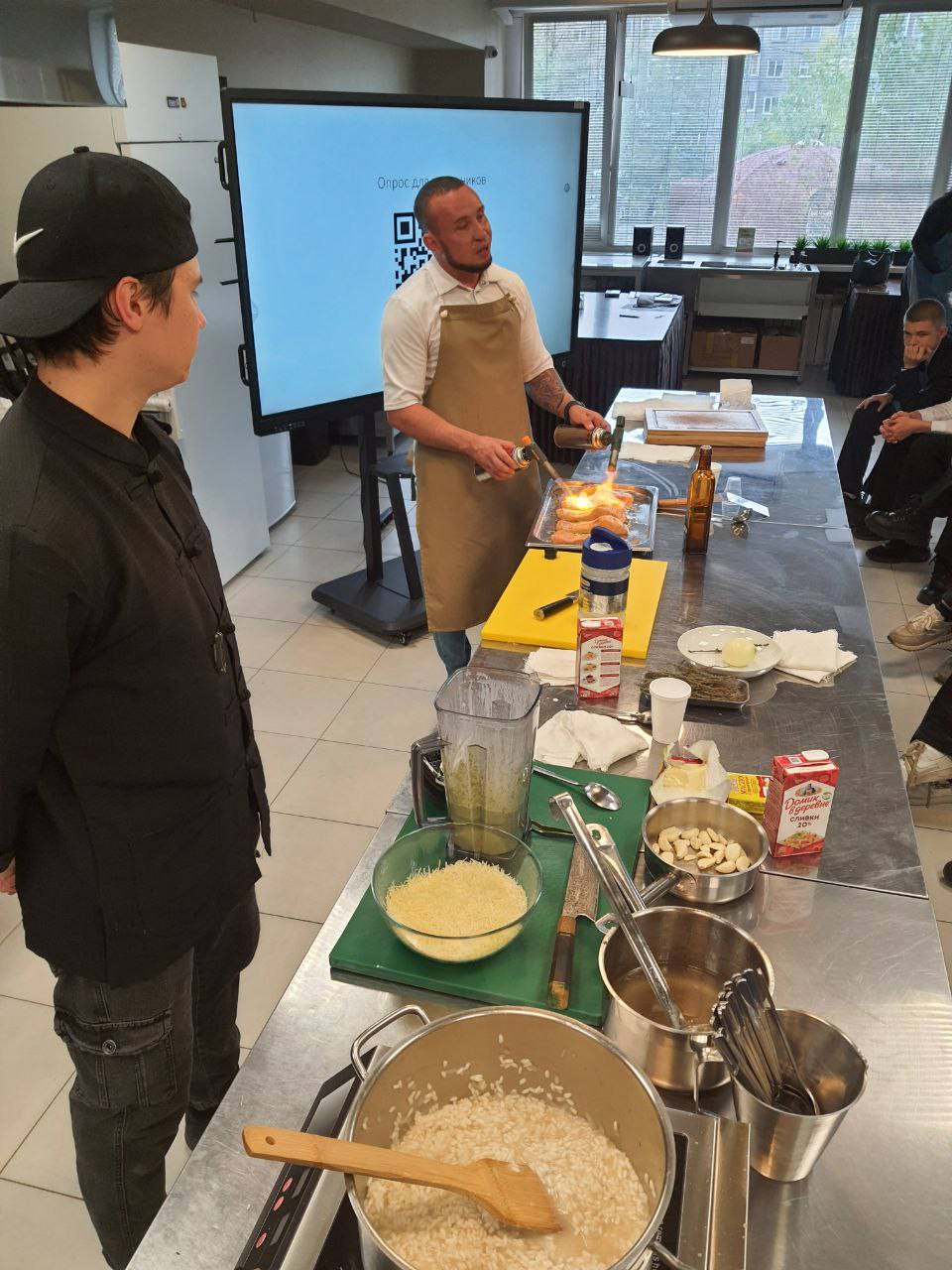 Более 100 ребят из школ №35 и №32 с большим интересом наблюдали за магией создания нежного ризотто и засыпали шефов вопросами о профессии. Самой вкусной частью, конечно, стала дегустация изысканного блюда собственного приготовления.