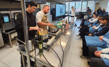 Настоящее кулинарное путешествие в Италию состоялось на базе Центра Фудсервиса! Бренд-шеф популярных заведений Улан-Удэ: караоке rooms «Челентано», «Z-Club» и «Очаг» Илья Толстиков и повар «Челентано» Сергей Бусовиков провели для школьников мастер-класс «Итальянская классика: ризотто с семгой».