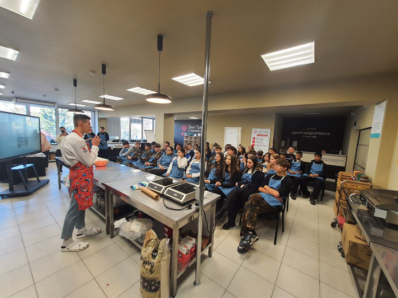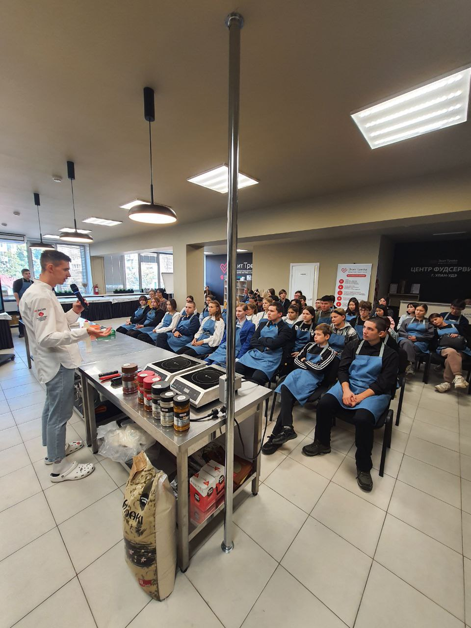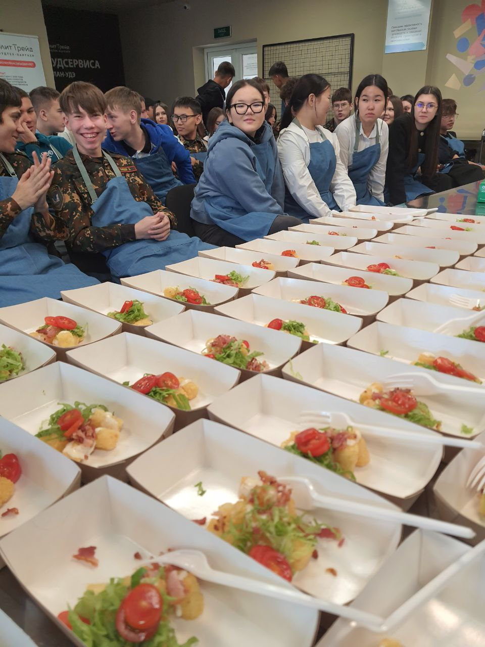 Более 90 учащихся из школ №18, №15 и будущие повара из группы ПиКД 225 с интересом погрузились в процесс. Активную помощь в проведении мастер-класса оказали обучающиеся 4 курса «Байкальского колледжа туризма и сервиса».
