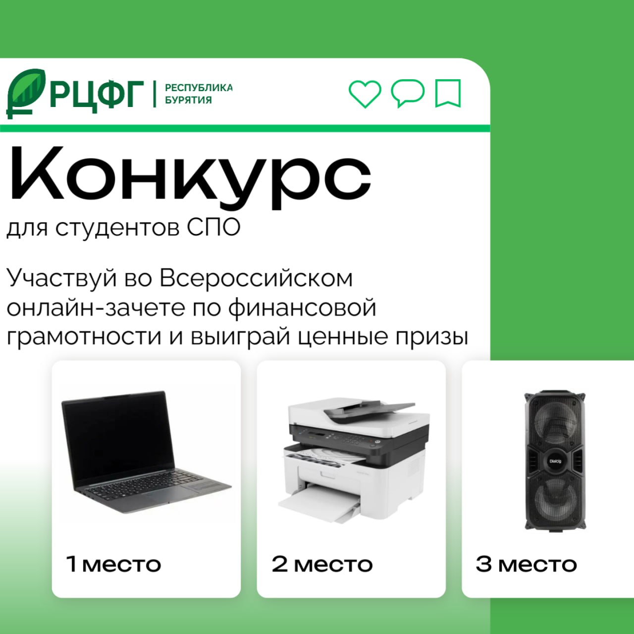 Топ-3 образовательные организации по количеству прошедших получат: 1 место - ноутбук, 2 место - МФУ и 3 место - напольную музыкальную колонку.