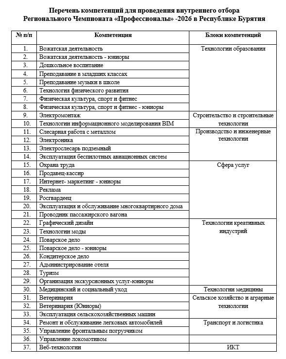 Начинается самый масштабный этап подготовки к Региональному чемпионату по профессиональному мастерству «Профессионалы» — Внутренний отбор! С 27 октября по 5 декабря 2025 года в профессиональных образовательных организациях республики пройдут соревнования на право представлять альма-матер на республиканском уровне.