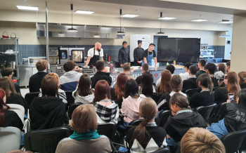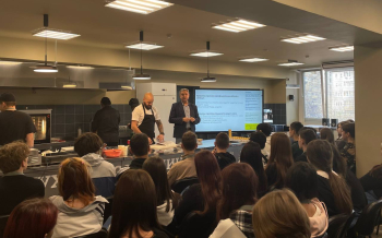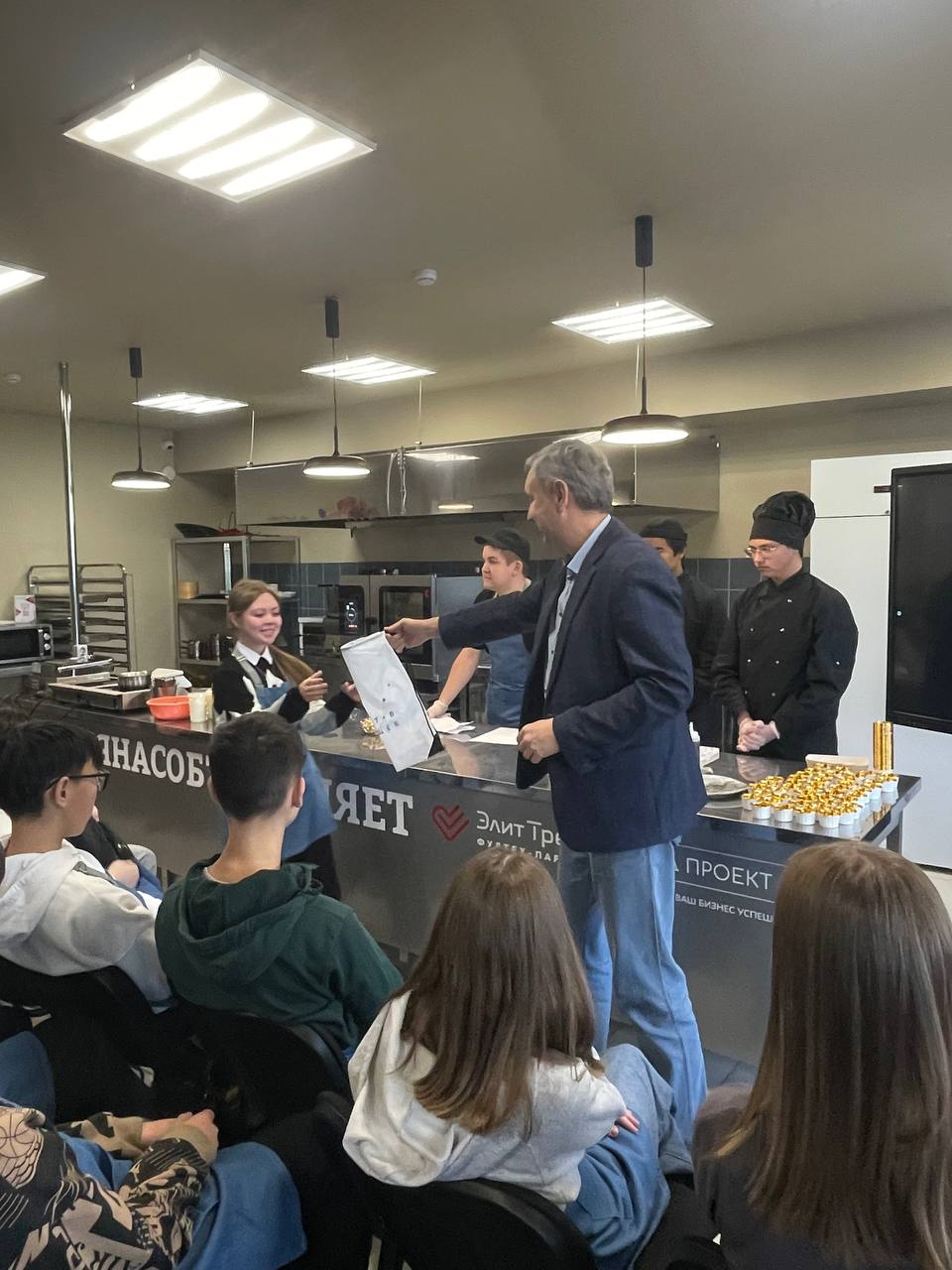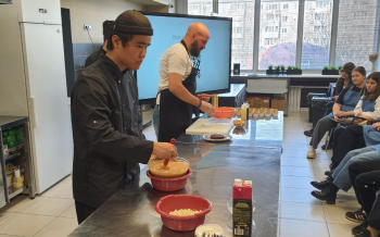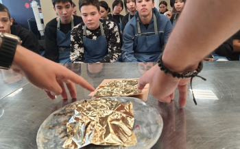 27 октября 2023 года в Центре Фудсервиса прошел необычный кулинарный мастер-класс. Шеф-повар и сооснователь бургерной «Митбери» и популярной сети кафе «ARIG» Андрей Кнаубпоказал ученикам из Нижнесаянтуйской школы и СОШ №2, как простое и любимое лакомство можно превратить в ресторанный шедевр, украсив его съедобным сусальным золотом!