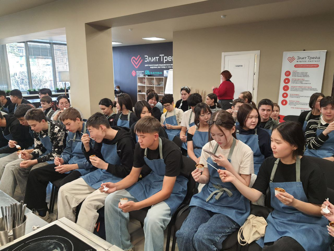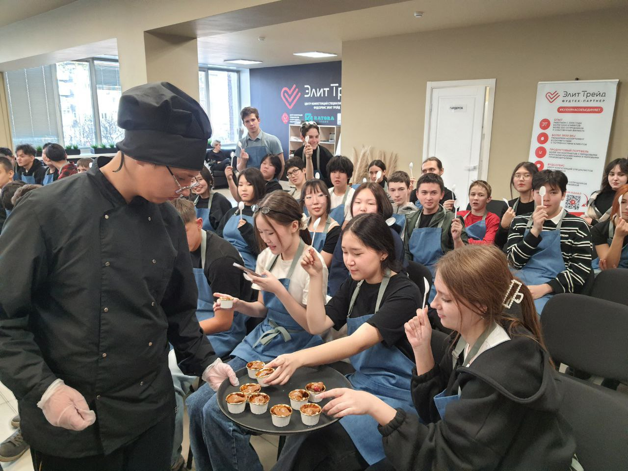 Более 50 школьников узнали секреты приготовления десерта, и самым сладким моментом, конечно, стала дегустация изысканного «Сметанника» — равнодушных не осталось!