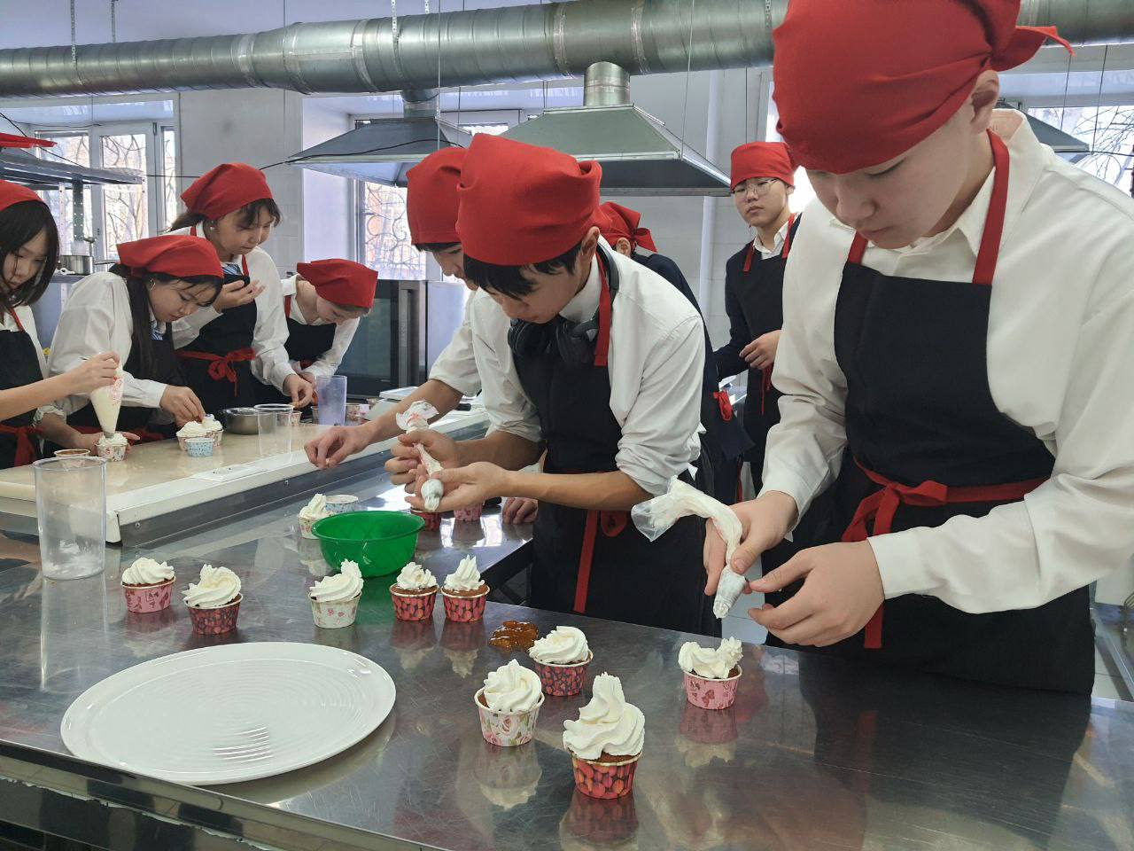 На базе ГБПОУ «Байкальский колледж туризма и сервиса» успешно прошли профессиональные пробы для учащихся 8-х классов школ №2 и №25 г. Улан-Удэ. Мероприятие было организовано в рамках федерального проекта ранней профессиональной ориентации школьников «Билет в будущее». Мастер-класс по направлению «Приготовление капкейков» провела опытный кондитер и мастер производственного обучения колледжа — Анна Вячеславовна Воронцова.