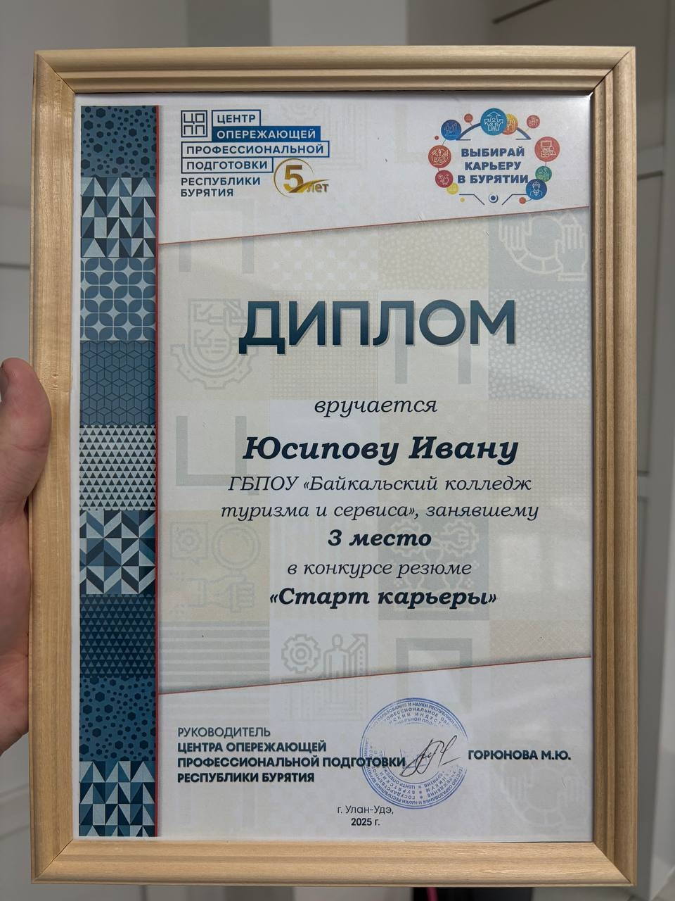 Поздравляем Юсипова Ивана (группа 1224) с 3 местом!