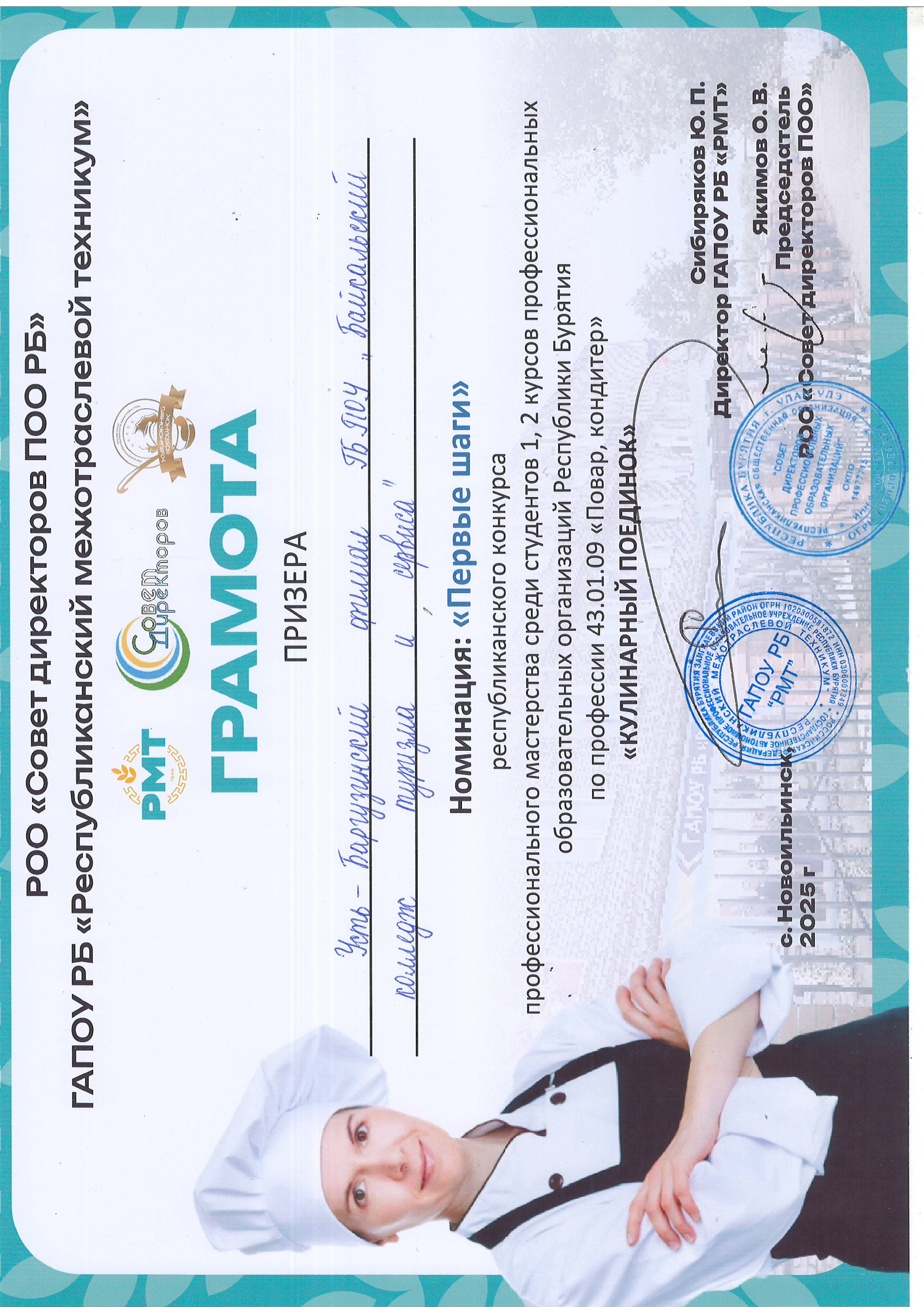 19 декабря 2025 года студенты 1 курса Усть-Баргузинского филиала приняли участие в Республиканском конкурсе «Кулинарный поединок», по профессии «Повар, кондитер».