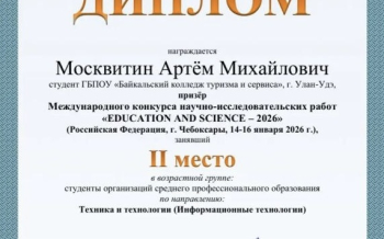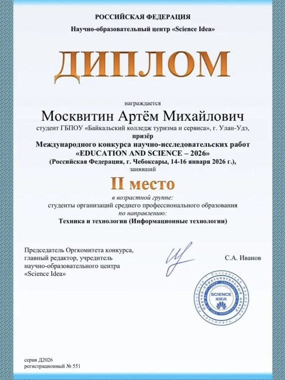 Артём Москвитин взял серебро на международном конкурсе научно-исследовательских работ «EDUCATION AND SCIENCE - 2026», который проходил в Чебоксарах с 14 по 16 января.