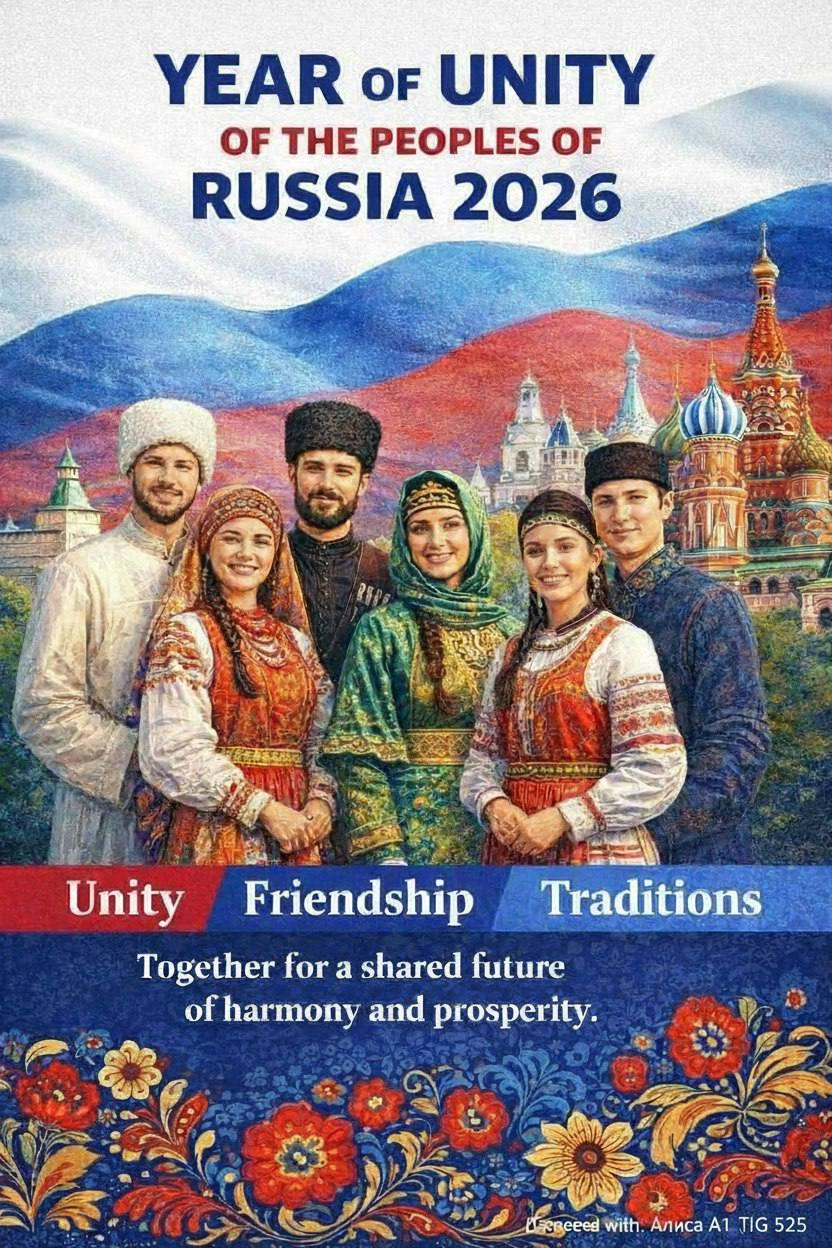 5 февраля объявили итоги конкурса электронных постеров на английском языке с использованием ИИ «Год единства народов России – 2026» («Year of Unity of the Peoples of Russia – 2026»).
