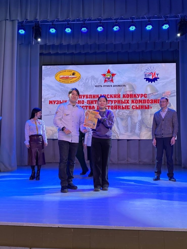Поздравляем студентку группы 1425 Ринчинову Дари с заслуженным 3 местом на Республиканском конкурсе «Отечества достойные сыны» в номинации «Музыкальная композиция»!