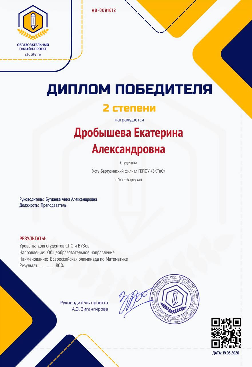 Студенты Усть-Баргузинского филиала приняли участие во Всероссийских дистанционных  олимпиадах  по математике и информатике. Свои силы в решении  задач попробовали студенты первого курса и показали отличный результат.