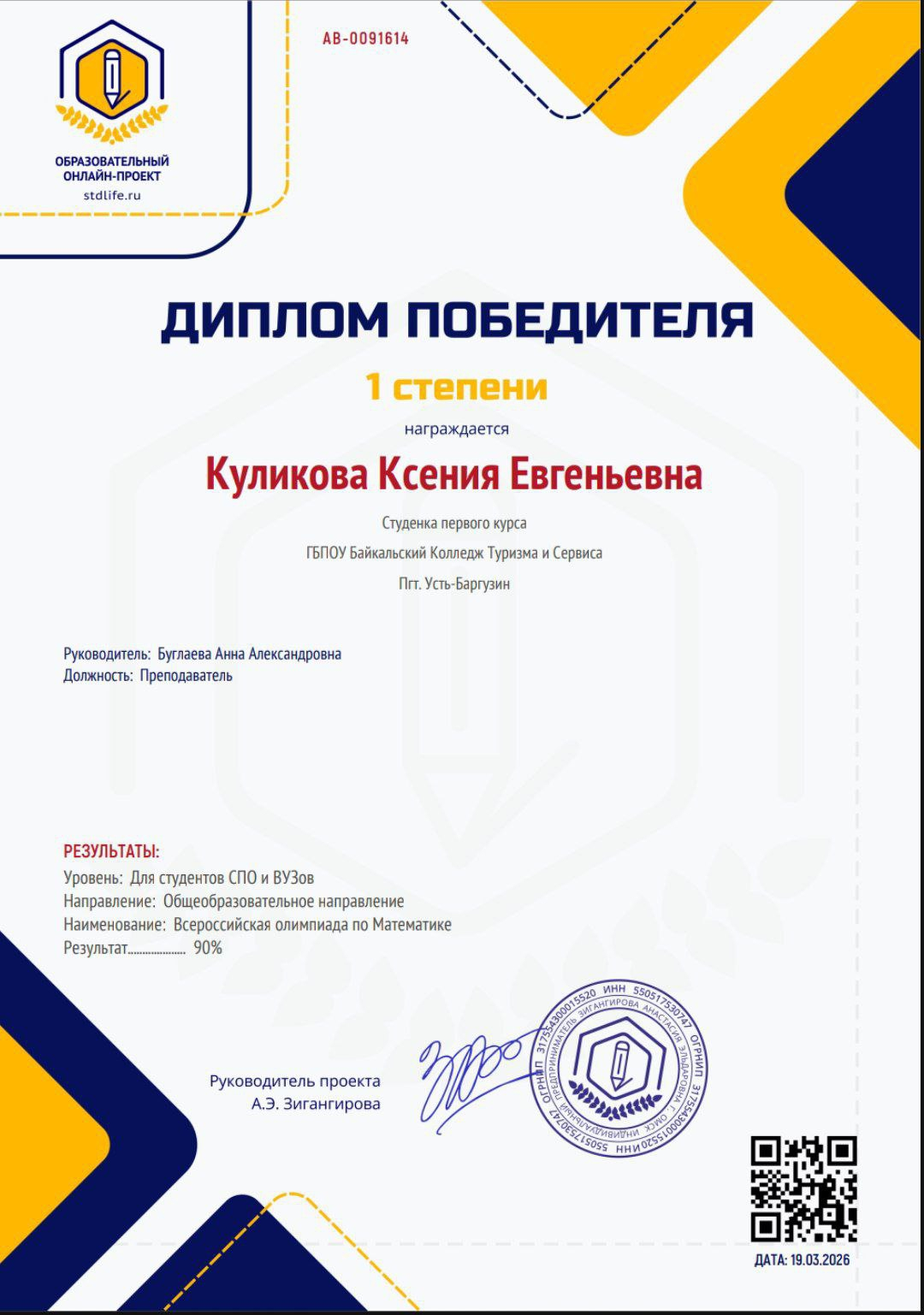 Куликова Ксенния - диплом 1 степени