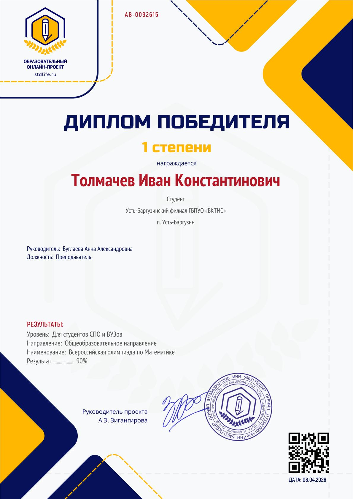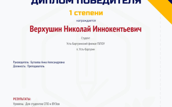 Верхушин Николай - диплом 1 степени