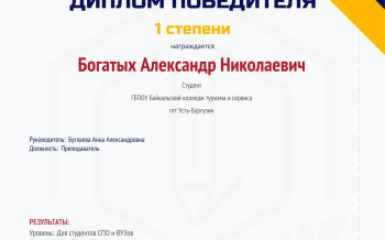 Богатых Александр -  диплом 1 степени,