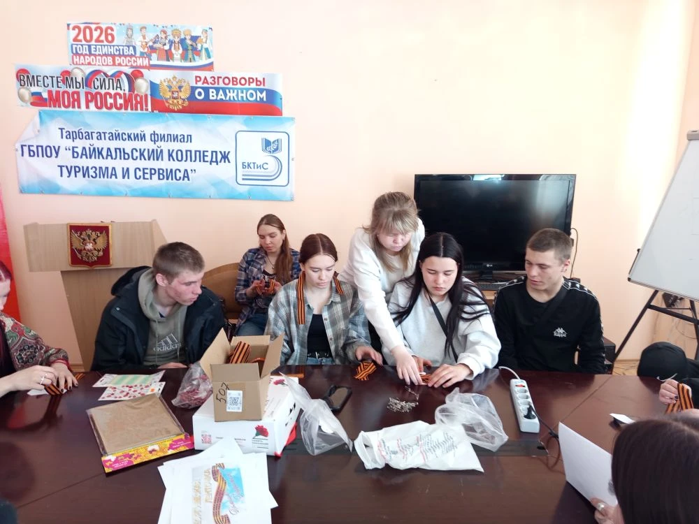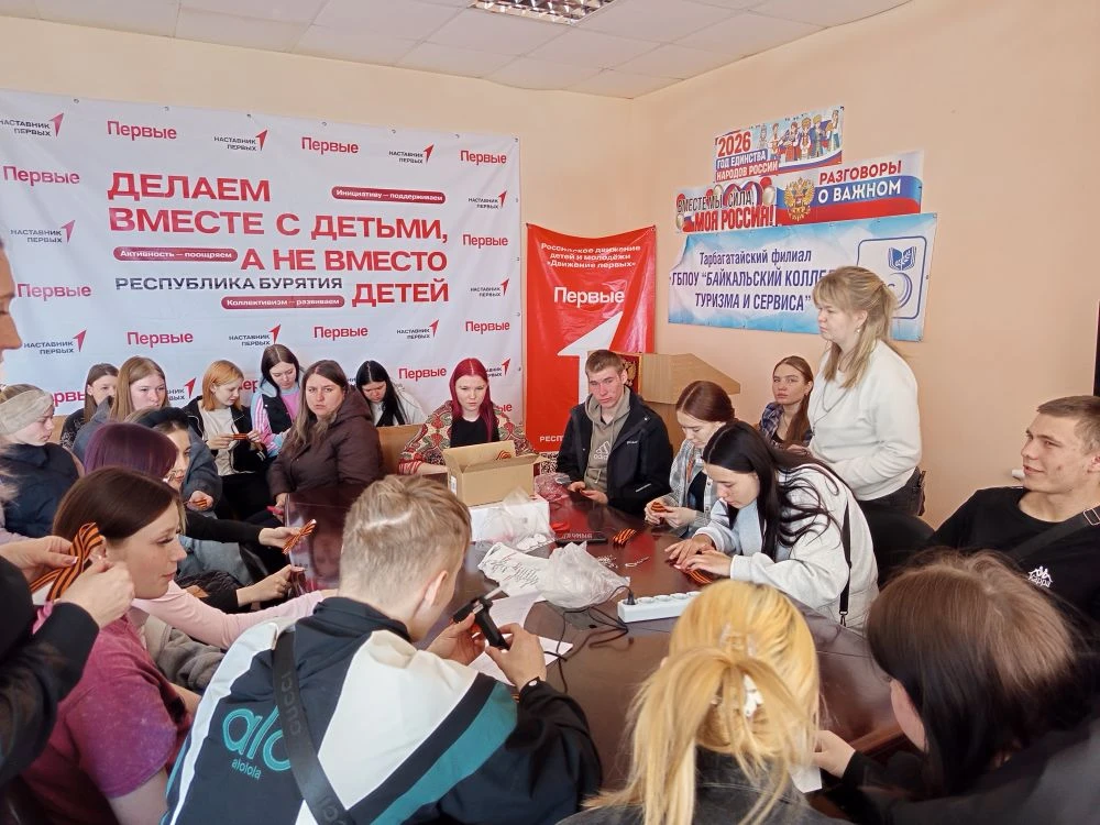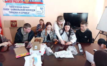 Специалист по молодежной политике МО "Тарбагатайский район" Еловская М.О провела студентам Тарбагатайского филиала серию мастер–классов по изготовлению броши «Георгиевская ленточка»